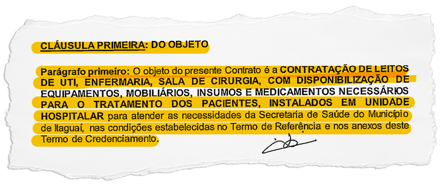 Com valor global de R$ 25.458.865,56 e validade de um ano, o contrato tem como objeto a disponibilização de leitos de UTI, sala cirúrgica com equipamentos, mobiliários, insumos e medicamentos. O documento foi assinado no dia 3 de outubro pelo secretário municipal de saúde Samuel Moreira da Silva.