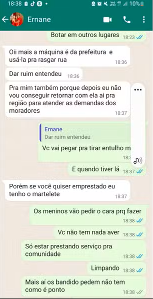 Em uma das mensagens trocadas com o traficante Pagodeiro, o vereador teria oferecido empregos em um hospital: “Eu cedo cargos para você, desde que você, que tem o poder da força na comunidade, fale bem de mim para que as pessoas votem em mim”.