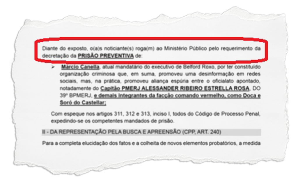 O traficante Soró comanda o crime em várias comunidades de Belford Roxo e é apontado como braço direito de Doca, chefão do Comando Vermelho. Já o capitão, com quem o bandido conversava, chegou a ser preso em maio de 2025, sob a suspeita de integrar um grupo de extermínio, e estava sob investigação da Corregedoria da PM,