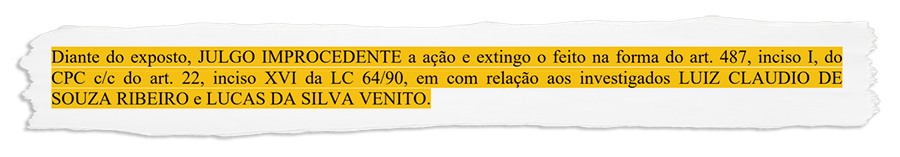 Ao jeitar a ação movida contra Luiz Carlos o juiz eleitoral Richard Robert Fairclough afirmou em sua decisão que “astrazidas aos autos são insuficientes para a confirmação de captação de sufrágio, tampouco abuso de poder econômico, ou qualquer outra irregularidade capaz de ensejar a procedência de uma ação de investigação judicial eleitoral”.